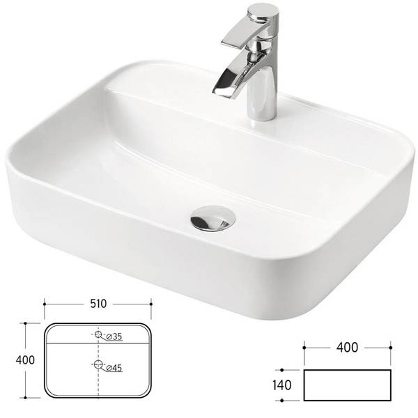 1x Waschbecken, Innenmaß B/H/T ca. 49/11/28 cm, Außenmaß B/H/T ca. 51/14/40 cm