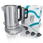 Der moderne Arendo Edelstahl-Turbo-Wasserkocher mit Basisstation ist eine hervorragende Wahl, wenn Du viel Wert auf eine hohe Funktionalität und ein zeitloses Edelstahl-Design legst. Der Wasserkocher aus gebürstetem Edelstahl ermöglicht die gewünschte Aufkoch-Temperatur individuell per Knopfdruck an der Basisstation auszuwählen und in kürzester Zeit Wasser nach Deinen Wünschen zu erhitzen.