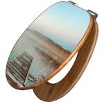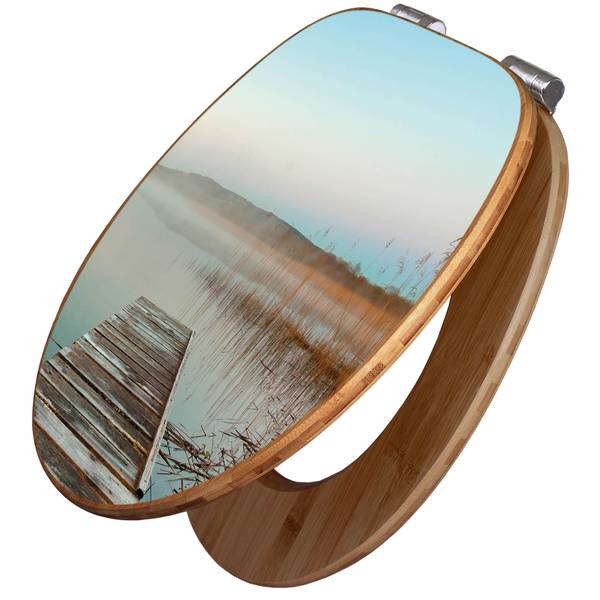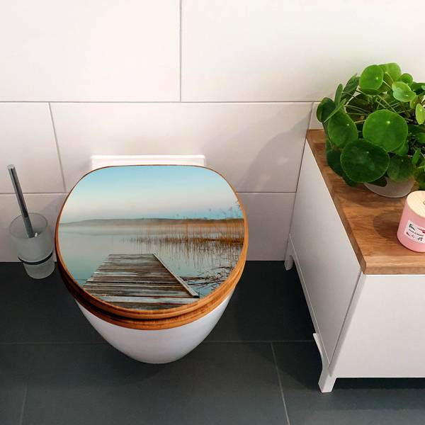 Der Klodeckel Bambus hat eine besondere Optik, ist stabil und massiv. Das Motiv des Klodeckel Holz besteht aus einer Motivfolie, die durch das Schutzlaminat zusätzlich vor Kratzern schützt.