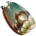 Der Klodeckel Bambus hat eine besondere Optik, ist stabil und massiv. Das Motiv des Klodeckel Holz besteht aus einer Motivfolie, die durch das Schutzlaminat zusätzlich vor Kratzern schützt.