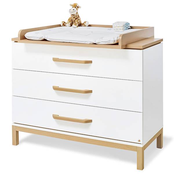 - Damit die Wickelkommode auch nach der Wickelzeit noch genutzt werden kann, lässt sich der Wickelaufsatz im Handumdrehen abnehmen. Die hochwertigen Griffe und der Sockel aus massivem Kiefernholz sorgen für eine besondere Optik
