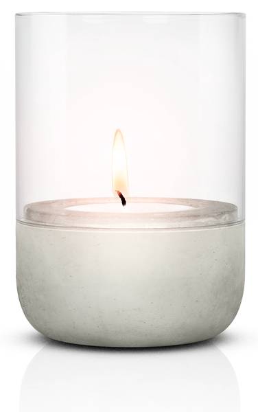 Die Serie CALMA von Blomus hat wunderschöne Windlichter mit einem Sockel aus Beton und einem Glaszylinder.