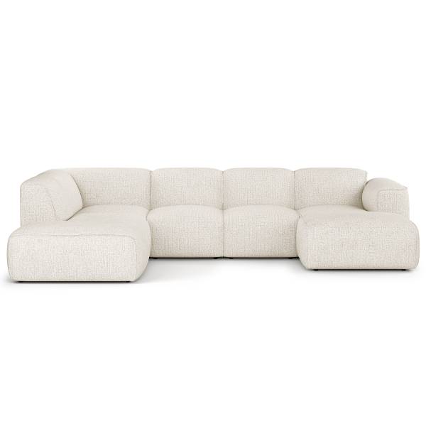 Webstoff Amaris: Creme - Longchair davorstehend rechts / Ottomane links