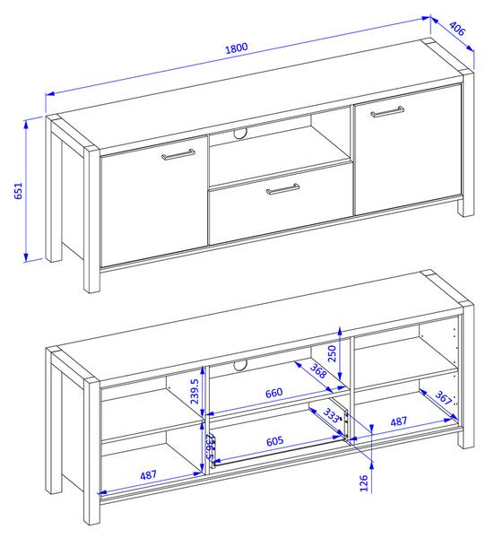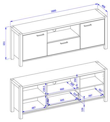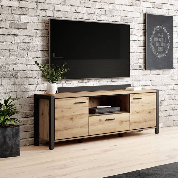 1x TV Lowboard mit 2 Türen, 1 Schubkasten, Gesamtmaß B/H/T: ca. 180/65/41 cm