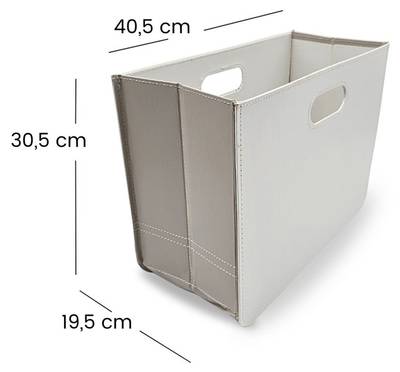 Der formschöne Magazinhalter bietet eine zeitlose und moderne Aufbewahrungsmöglichkeit und dient gleichzeitig als Blickfang in deinem Zuhause. Der Zeitungsständer ist sehr stabil und besitzt zwei praktische Tragegriffe für den Transport. Bei Nichtgebrauch kann der Zeitschriften Korb leicht zusammengeklappt werden. Der Einlegeboden ermöglicht einen sicheren Stand und viel Platz für deine Zeitungen und Magazine.