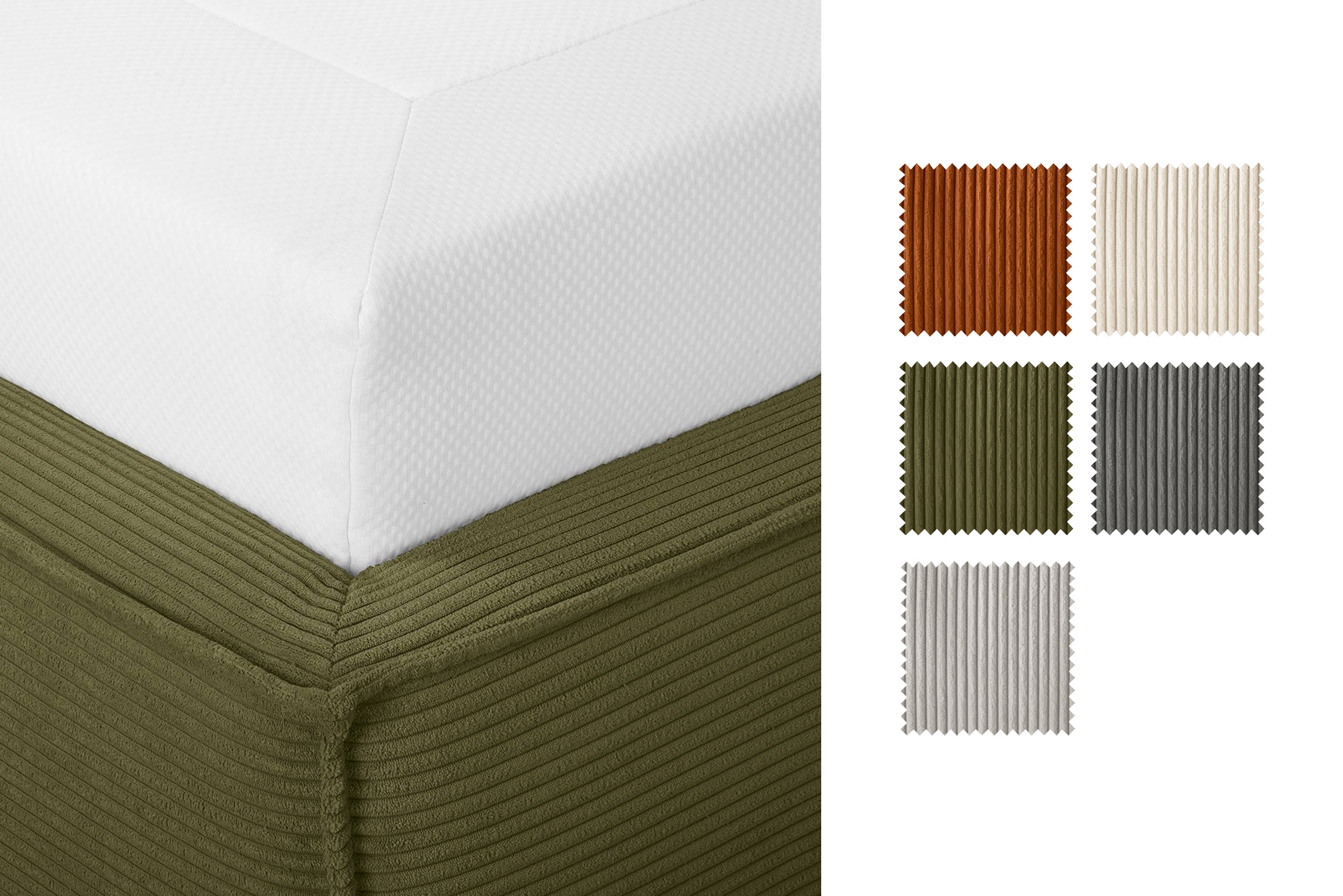 Besonderheit: angesagter Cordstoff mit 70s Vibes und besonders weichem Griff; pflegeleicht; nur erhältlich für unser Polsterbett KINX mit Bettkasten