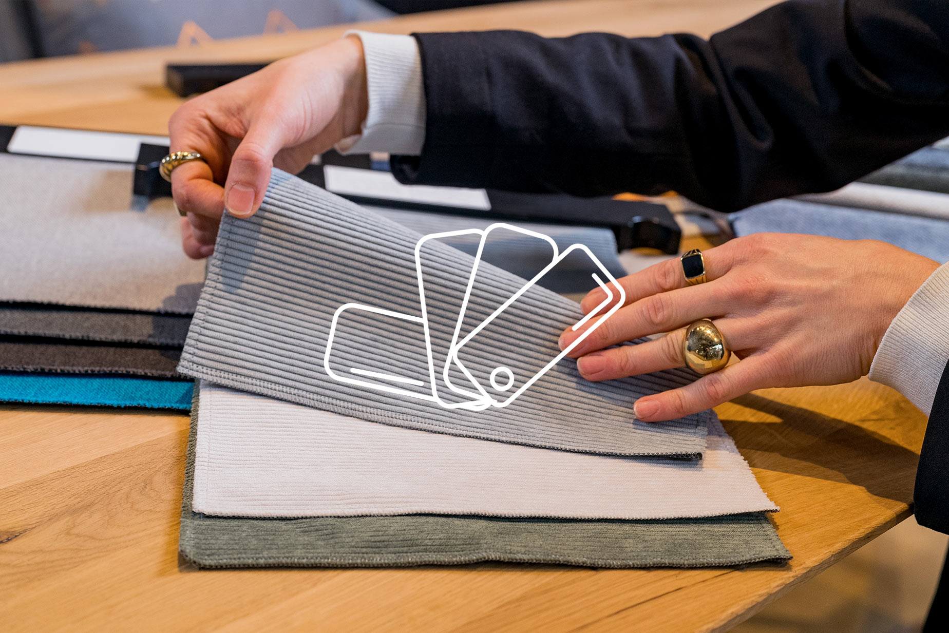 Du möchtest den Sitzkomfort eines Sofas testen oder einen Stoff auf Haptik und Farbqualität prüfen? In unseren Showrooms kannst du Möbel Probe sitzen und mit allen Materialien auf Tuchfühlung gehen.