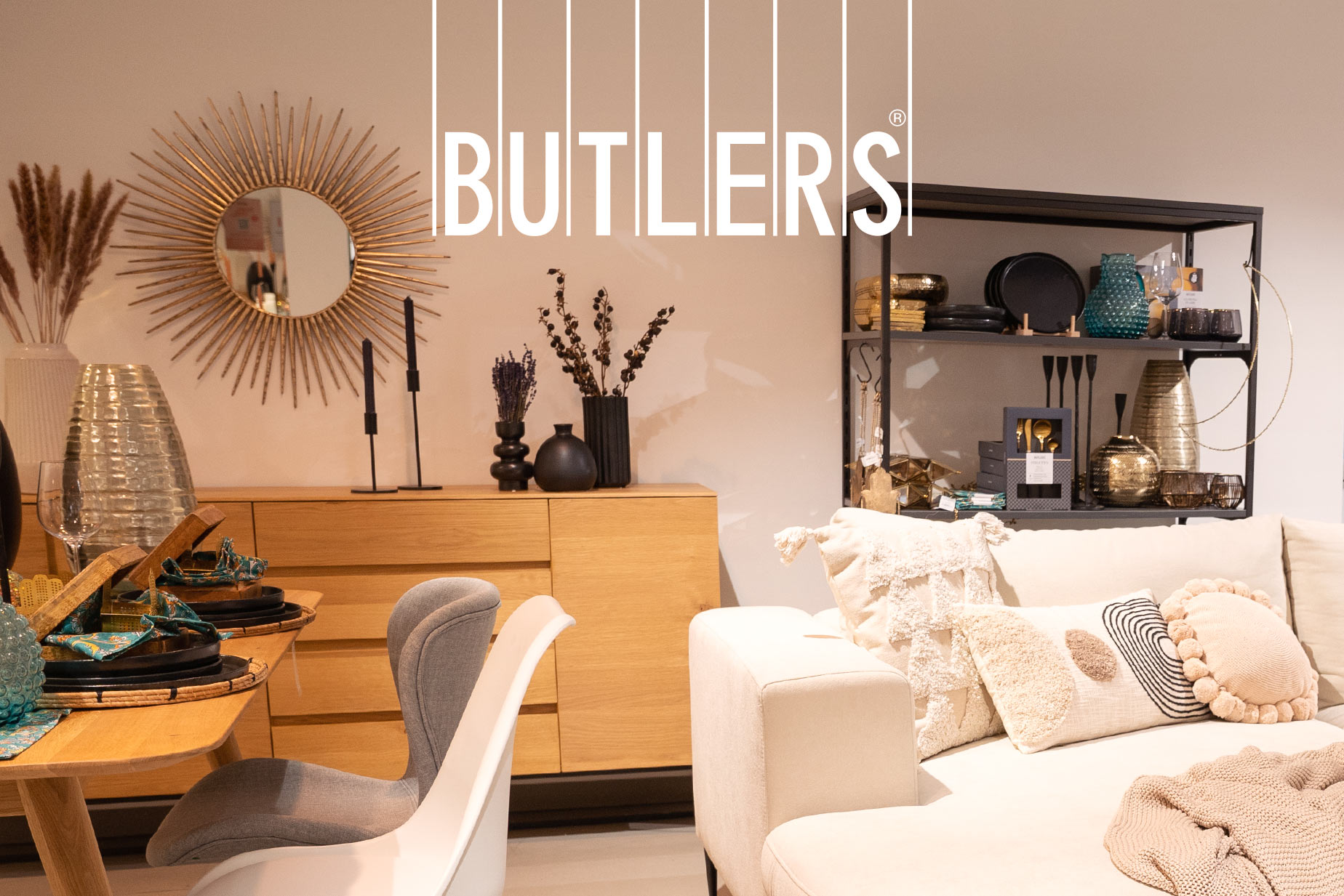 Mit einer Auswahl an BUTLERS-Artikeln findest du in unseren Showrooms die passenden Wohnaccessoires zu deinen neu entdeckten Lieblingsmöbeln.