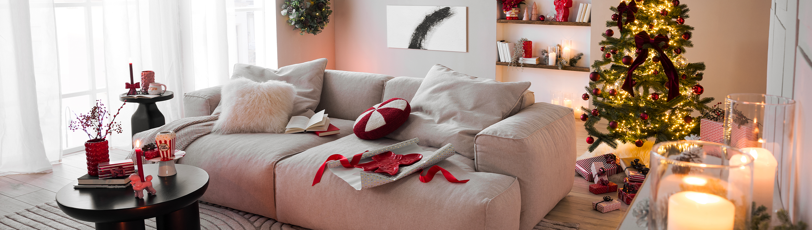 Dieses Jahr wird Weihnachten sweet wie Candy und maximal verspielt! Denn hier treffen sanfte Rosanuancen auf klassisches Nikolausrot sowie fluffige Textilien auf herzige Deko mit Hingucker-Garantie ... und schon verwandelt sich deine Chill-out-Area in ein lebendiges Xmas-Wohnzimmer. Key-Piece des Trends und absolut angesagt: Schleifen, die zur Weihnachtszeit eine einladende Atmosphäre kreieren.