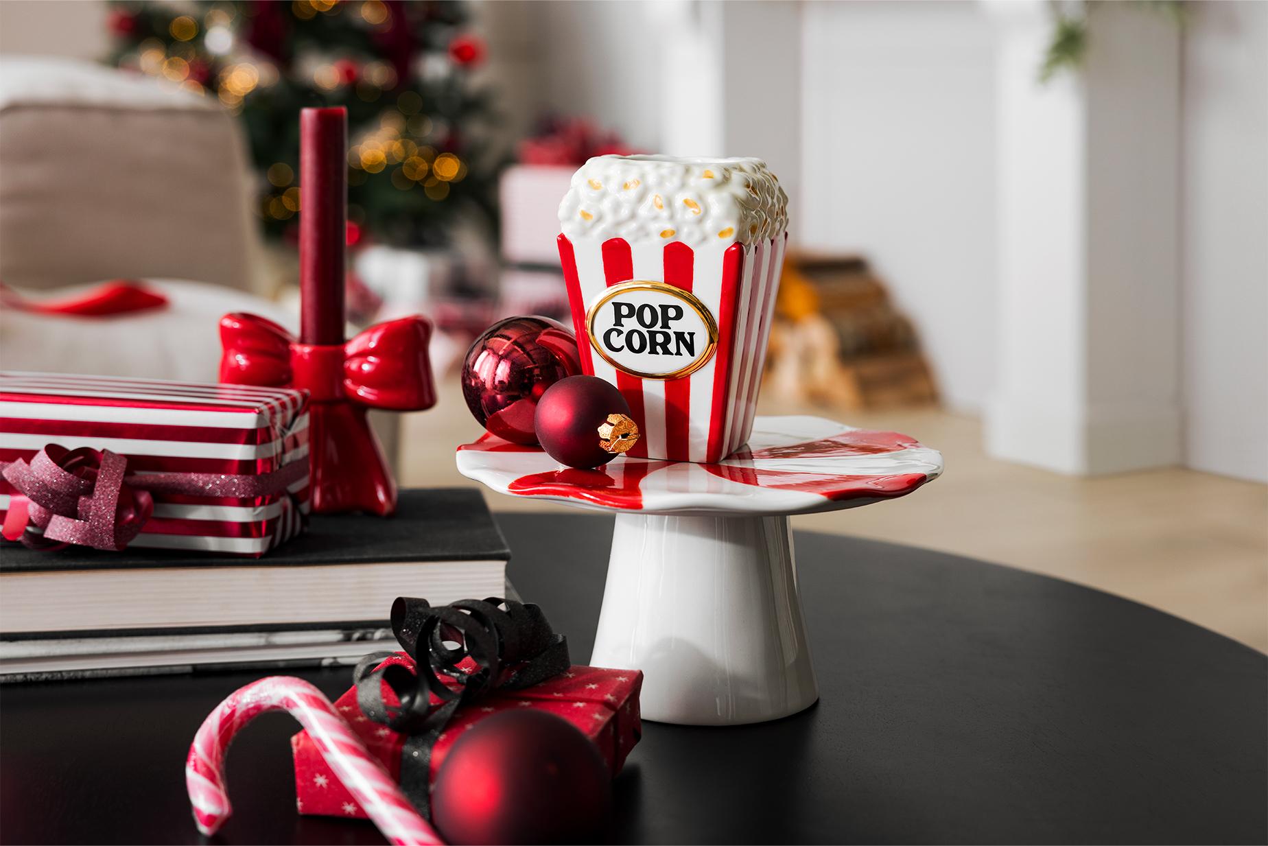 Süße Weihnachtsdetails machen hier den Unterschied: Candy Canes, glänzende Kugeln in Santa Red und charmante Eyecatcher wie Schleifen und Popcorntüte lassen den Tisch wie eine kleine Festbühne wirken. Bist du bereit für deine große Xmas Celebration mit deinen Lieben?